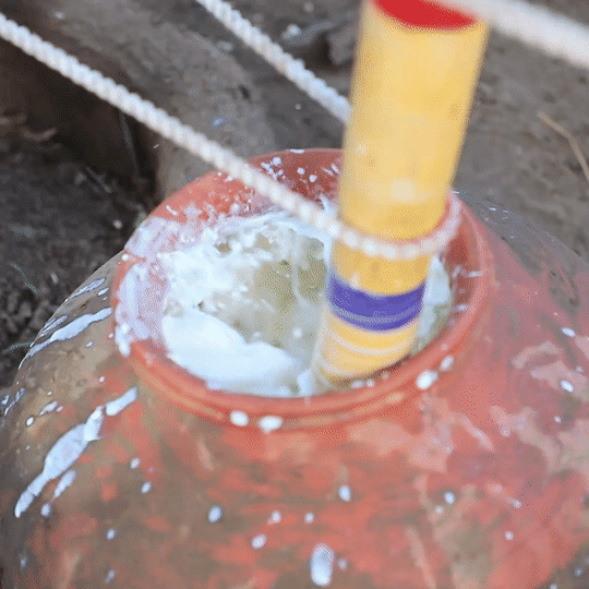 To get the proper makkhan (butter) we do hand churning of curd which was formed overnight. Curd is hand churned with SHEESHAM wood churner at low RPM which ensures all the nutrients are retaken.